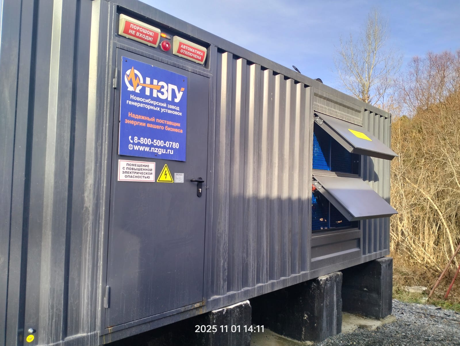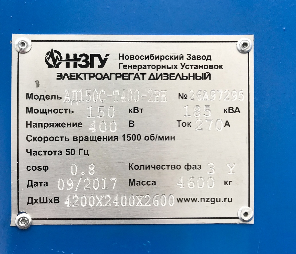 Дизельгенератор установлен на территории производственного предприятия в г.Новосибирске и предназначен для резервного электроснабжения.