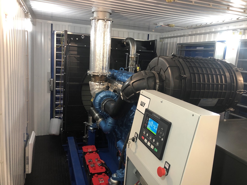 Дизельный генератор мощностью 1 Мегаватт на базе двигателя MOTEURS BAUDOUIN 12M33G1400 в утеплённом блок-контейнере с дополнительным топливным баком 5000 литров.